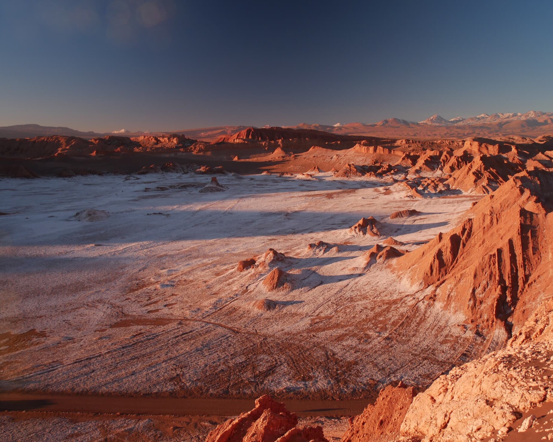 Recepción en Calama. Transfer a San Pedro de Atacama. Trekking 3h-4h en la Cordillera de la sal para terminar en el Valle de la luna al atardecer para observar este paisaje lunar. Transfer al hotel Terra Luna Atacama (A,C)