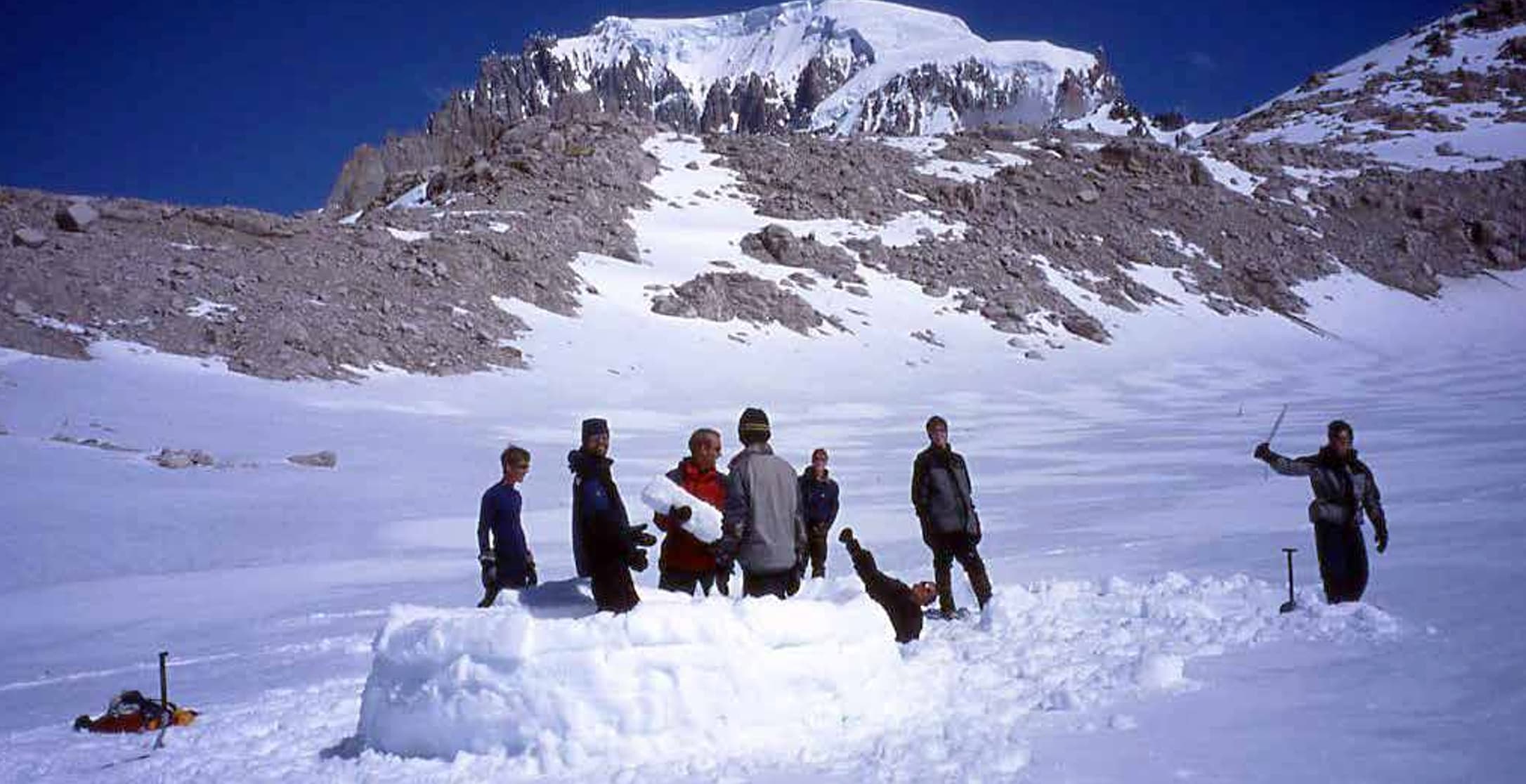 TERRA LUNA provee las carpas, las cuerdas de montaña, las cuerdas fijas, las radios, el GPS, los trineos, las raquetas, las palas de nieve, los clavos de hielo y las estacas adicionales, etc..